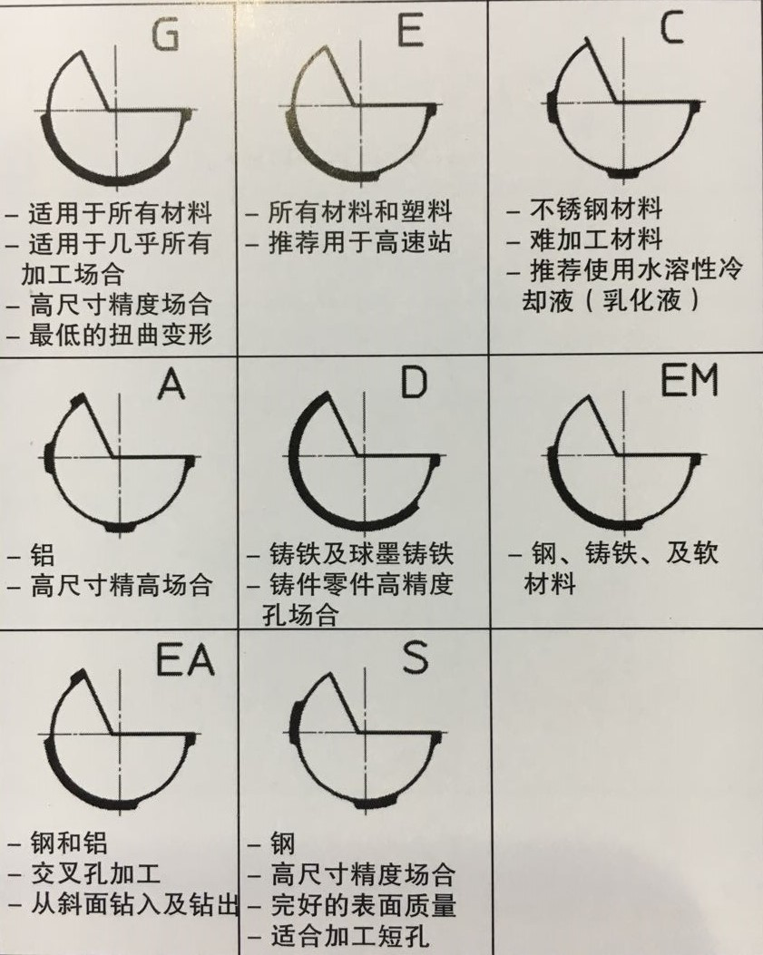 C形油隙:三點(diǎn)支撐。支撐面更小,并且,在三點(diǎn)支撐之間有儲(chǔ)油槽,可以使切削油充分的到達(dá)支撐面與孔壁之間,潤(rùn)滑效果非常好,降低加工溫度,延長(zhǎng)刀具使用壽命。